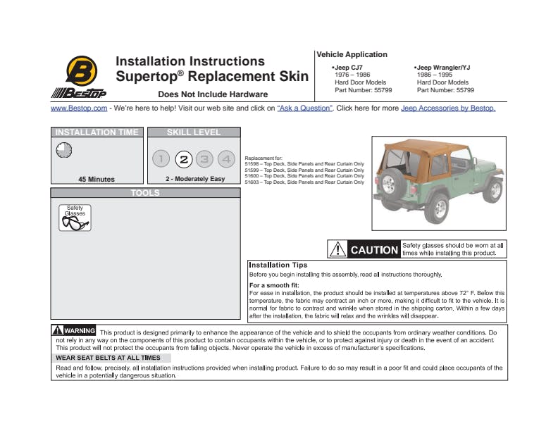 Supertop Classic Skin - Jeep '76-86 CJ7 / '87-95 Wrangler YJ (Spice; Clear Windows)