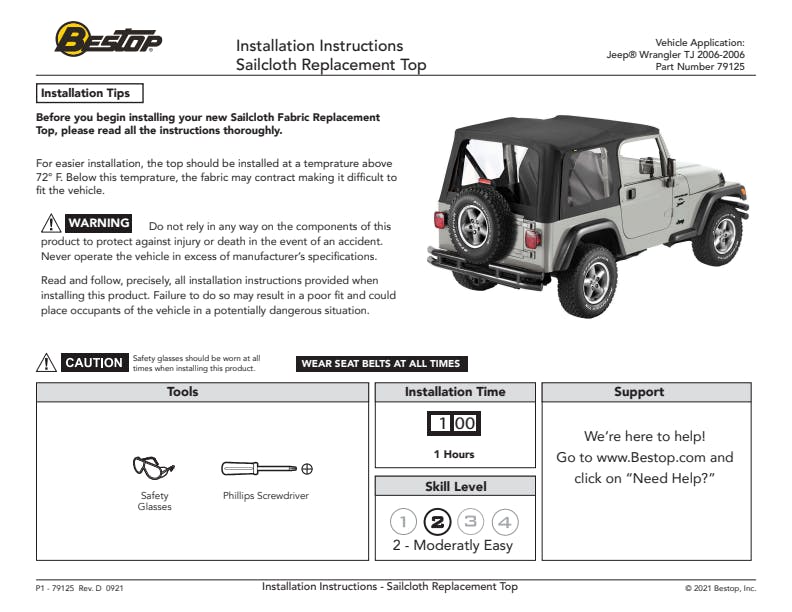 - All Bestop Soft Top Parts Can Be Replaced Individually