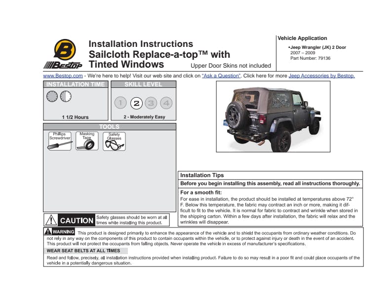 - All Bestop Soft Top Parts Can Be Replaced Individually